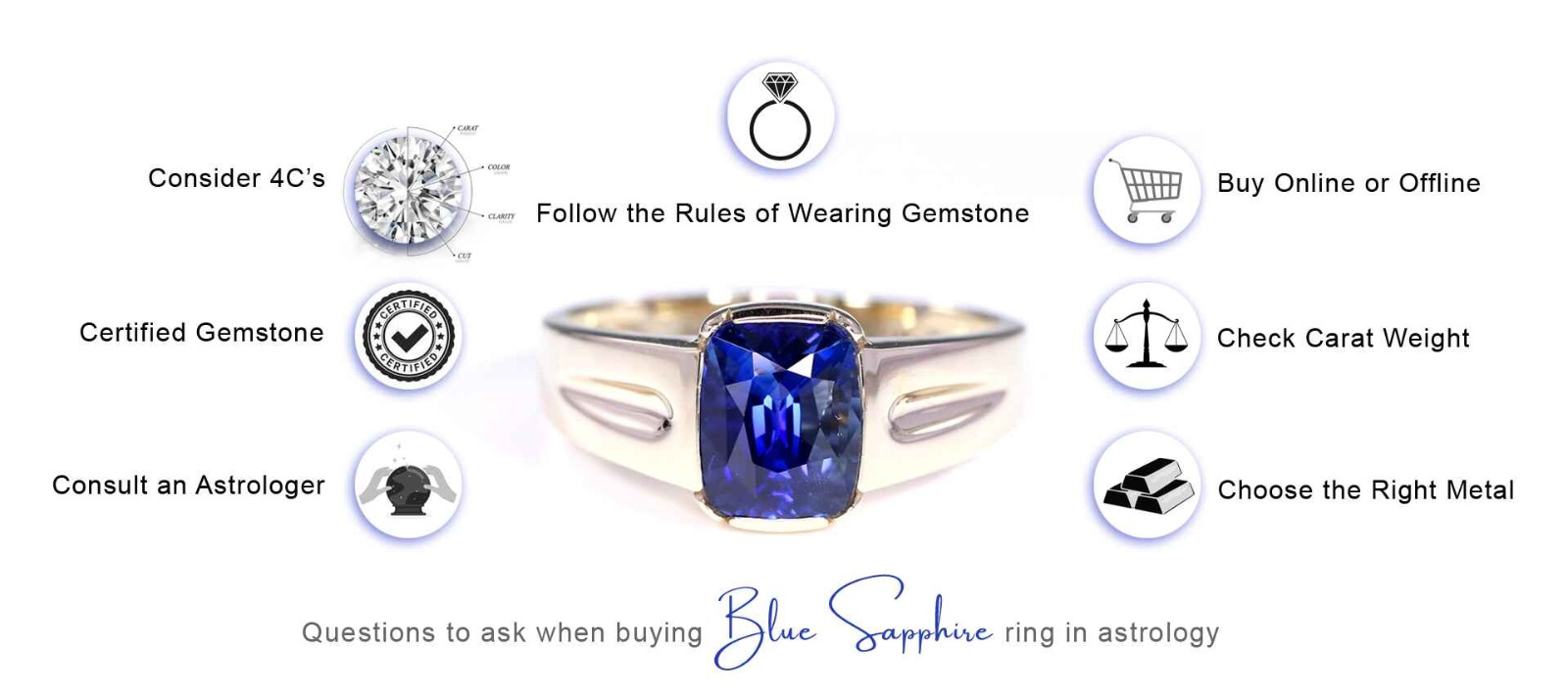 Natural Blue Sapphire is worn to strengthen Saturn’s positive effects in a birth chart. It is often recommended for individuals seeking career growth, business success, mental clarity, and protection from obstacles. When suited to the wearer, Neelam is said to deliver results quickly and dramatically.